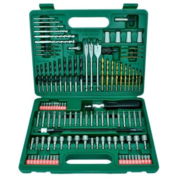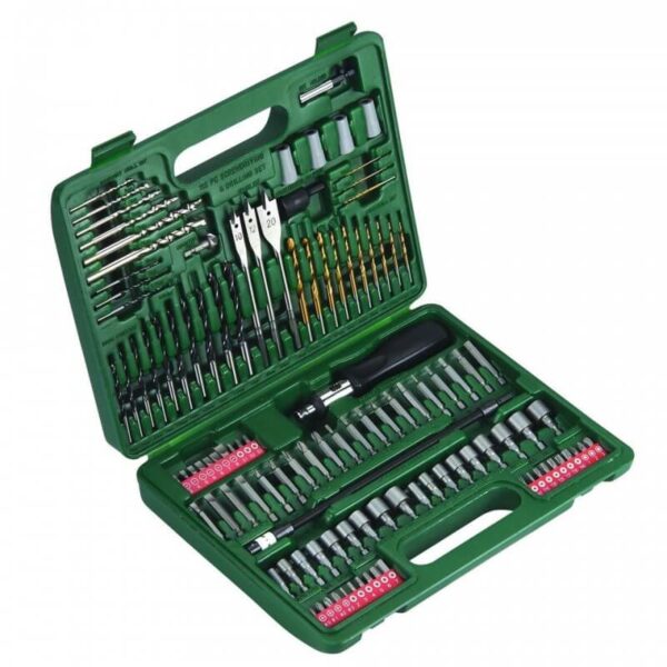 Rinkinį sudaro: plokšti, kryžminiai, šešiakampiai ir Torx antgaliai, šešiakampės sukimo galvutės, magnetiniai laikikliai, atsuktuvo rankena bei metalo, medžio ir betono grąžtai. Rinkinys supakuotas plastikinėje dėžėje.