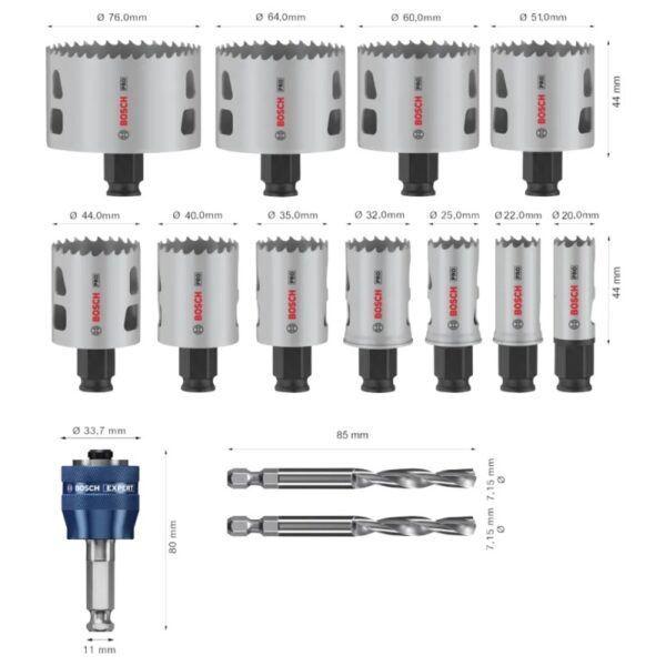 14 gręžimo karūnų rinkinys BOSCH Multi Material PC Plus