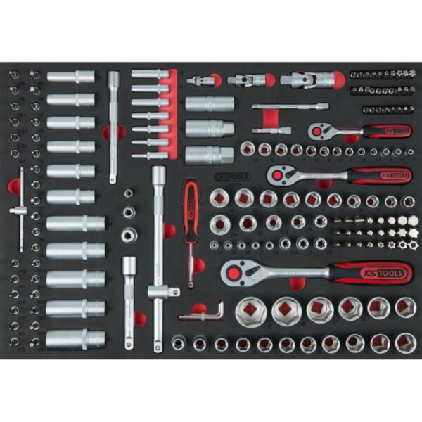 215 dalių įrankių vežimėlis KS TOOLS RACINGline, 7 stalčiai, su priedais