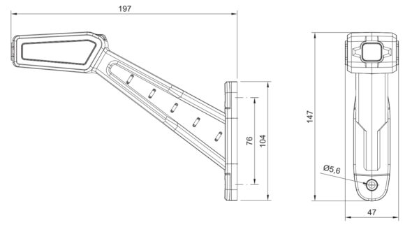 3-functional LED gabaritų žibintas, dešinės pusės, long, slanted rubber arm, 2×0.75 mm2 cable 0.3 m long.