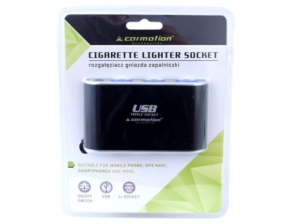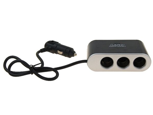 3-socket cigarette lighter splitter 12/24V switches, USB 1000 mA