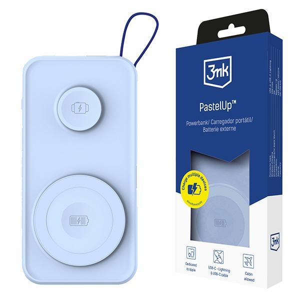3MK Powerbank PastelUp 10,000mAh 22.5Wz Magsafe + įkrovimas Apple Watch mėlynos spalvos