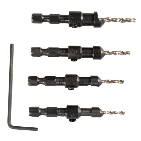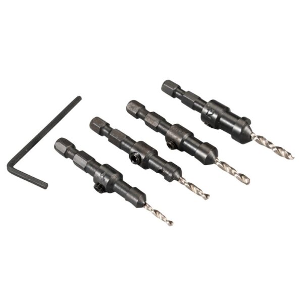 - Rinkinyje: 2,4 mm (Nr. 6), 2,8 mm (Nr. 8), 3,2 mm (Nr. 10), 3,6 mm (Nr. 12) grąžtai