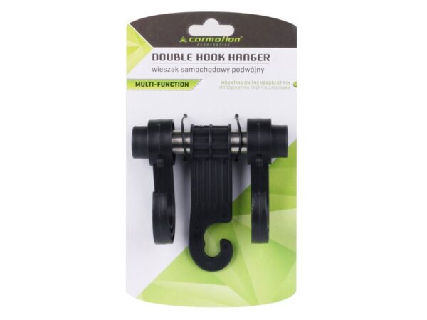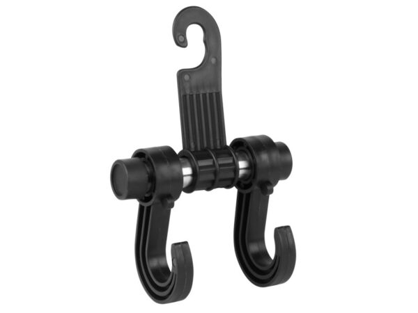 Universal and, above all, practical hanger that can be used in any car. It has an organizational function, it ensures the safe transport of bags or clothes. It was made of durable black ABS plastic. Designed to be mounted on the headrests of the chair or on the handles, on the handles above the door.