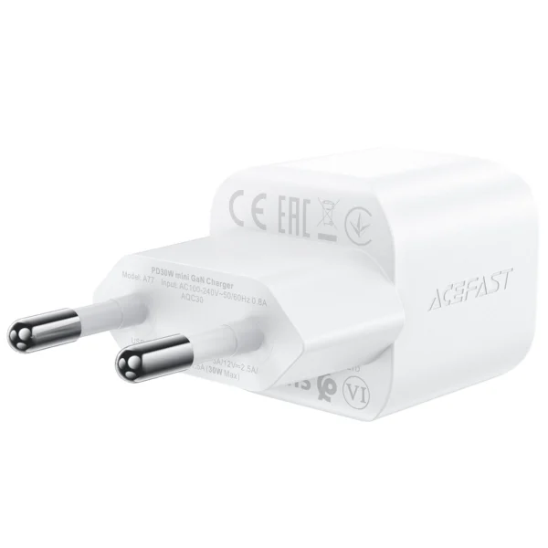 Acefast A77 Mini 30W GaN wall charger with Power Delivery technology + USB-C cable – white