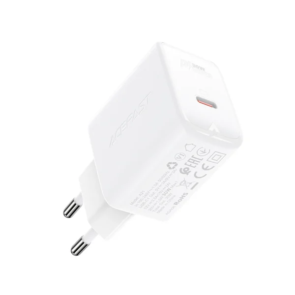 Acefast įkroviklis GaN USB Type C 30W, PD, QC 3.0, AFC, FCP baltos spalvos (A21 baltos spalvos)