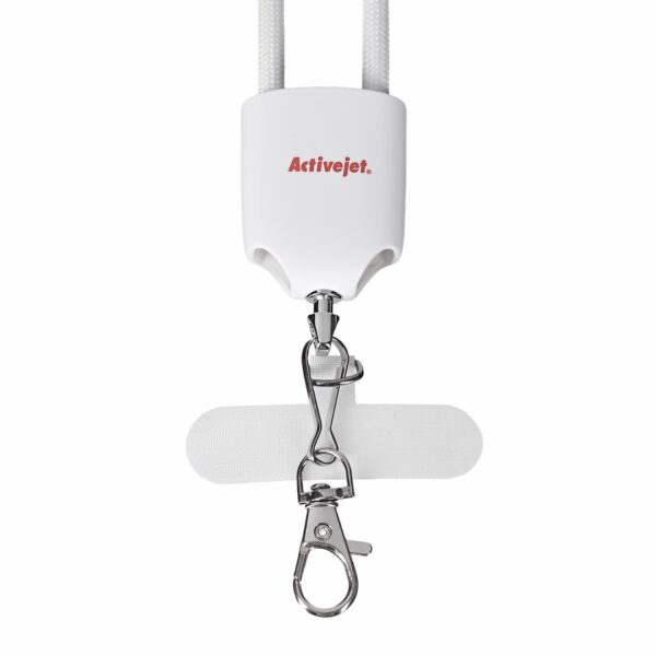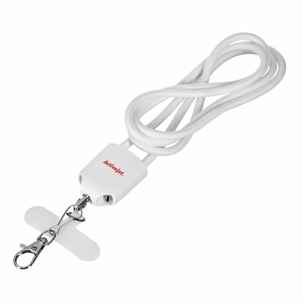 Activejet dirželis su 3-in-1 įkrovimo kabeliu, baltas. Galai su įvairiais jungtimis: USB-C, Lightning adapteris, USB-A