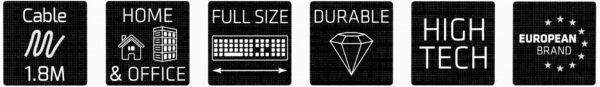 Klaviatūros matmenys (WxDxH): 432 x 146 x 20 mm,