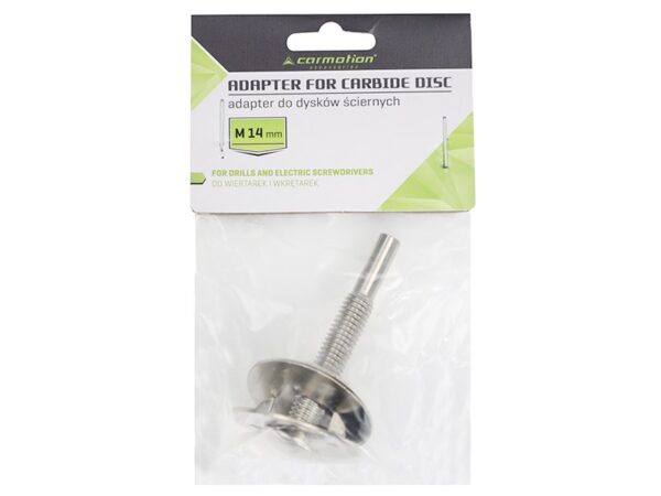 Adapter with pin for drill/screwdriver, for abrasive discs with 14mm hole.
