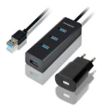 Šakotuvas USB 3.0 su 3 prievadais USB Type-A ir RJ-45, PD 100W.