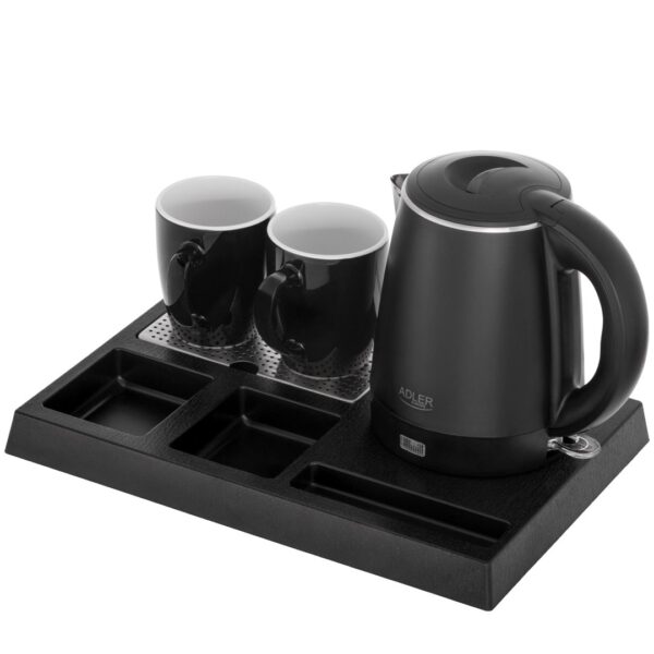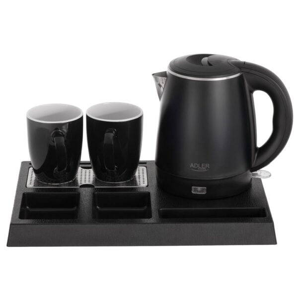 Adler AD 1387 Viešbučio virdulys nerūdijančio plieno 1 l + padėklas su puodeliais juodas
