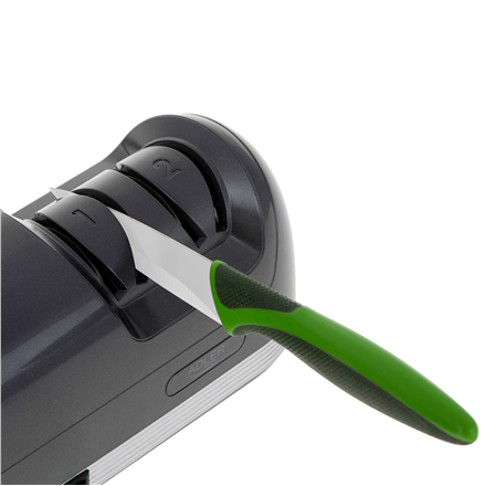 | Kitos savybės | Quick and easy sharpening; Silent work cycle; 2-stage system – sharpens and then hones blades; Optimal sharpening angle guides |