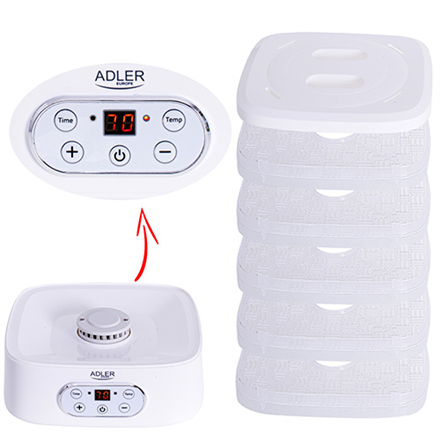 Adler | Food Dehydrator | AD 6658 | Power 230 W | Number of trays 5 | Temperature control | Integrated timer | White