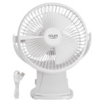 Adler Rechargeable Clip-on Desk Fan | AD 7342 | Table Fan | Black | Diameter 15.5 cm | Number of speeds 3 | Oscillation | 5 W