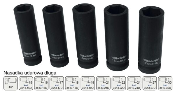 Specializuotos Adler smūginės galvutės, skirtos naudoti su pneumatiniais įrankiais, dirbančiais itin sunkiomis sąlygomis esant kintamoms apkrovoms. Galvutės pagamintos iš chromo molibdeno plieno (Cr-Mo). Cr-Mo plienas yra unikalus legiruotasis plienas, pasižymintis dvigubai didesniu atsparumu tempimui nei įprastas anglinis plienas ir tris kartus aukštesne takumo riba. Adler galvutės ilgą laiką išlaiko savo nominalius matmenis ir neskyla veikiamos smūginės apkrovos. Ypač rekomenduojamos profesionaliems padangų montavimo ir automobilių servisams.