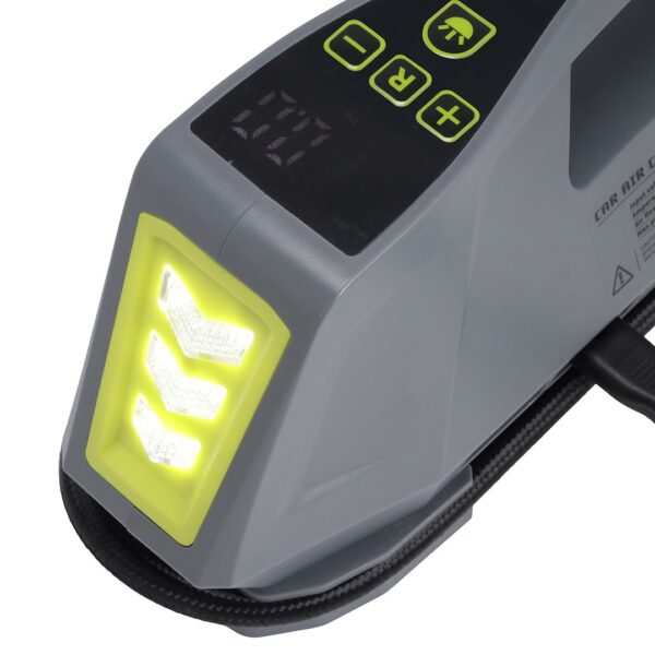 A modern and multipurpose air compressor with dual power supply (12V/230V) is an indispensable device for use both in the car and at home. Thanks to its digital pressure gauge with automatic shutoff when the desired pressure is reached, you can accurately inflate tires, balls, air mattresses, and other accessories. In addition, the integrated LED flashlight makes it easy to use at night and in low visibility.