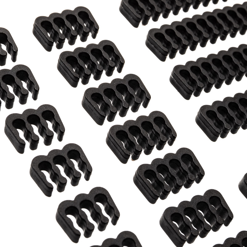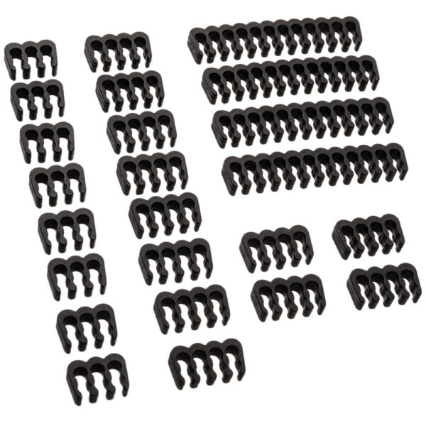Cable comb set in black, for 3 mm cable diameter, made of ABS plastic, 4x 24-pin / 12x 8-pin / 8x 6-pin