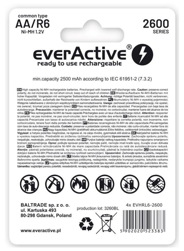 Akumuliatoriai everActive Ni-MH R6 AA 2600 mAh Professional Line