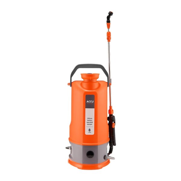 Prekės ženklas- Accu. Modelis- WOA.2296. Ilgis- 230 mm. Plotis- 190 mm. Aukštis- 530 mm. Talpa- 8 l. Spalva- Oranžinė sp.. Teleskopinė rankena- Ne. Teleskopinės rankenos ilgis cm- 60 – 90. Purškimo srovės reguliavimas- Taip. Maksimalus darbinis slėgis- 2.8 Bar. Su manometru- Ne. Privaloma garantija- 24 mėn.