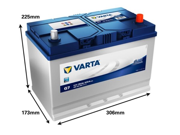 Prekės ženklas- Varta. Modelis- BD G7. Akumuliatoriaus tipas- Švino rūgštinis. Akumuliatorius skirtas- Automobiliams. Įtampa- 12 V. Akumuliatoriaus talpa- 95 Ah. Startinės srovės galingumas- 830 A. Poliškumas- – + . Ilgis- 30.6 cm. Plotis- 17.3 cm. Aukštis- 22.5 cm. Svoris- 20.23 kg. Garantija- 24 mėn. Papildoma informacija- Blue Dynamic.