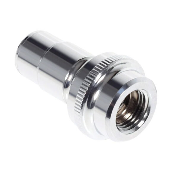 Nickel-plated push-in fitting from Alphacool, female thread, male counterpart