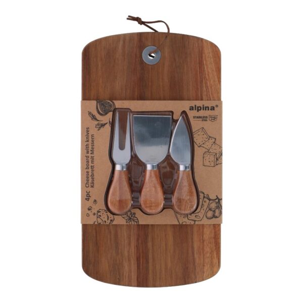 Alpina – Cheese Serving Set: Wooden Board 32×17.5 cm + 3 Knives