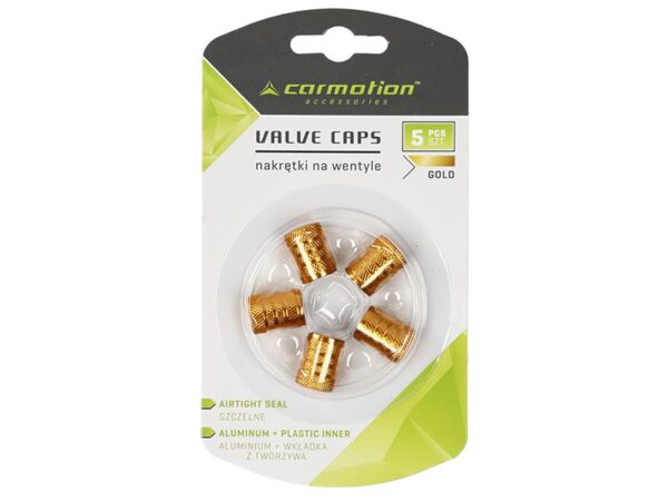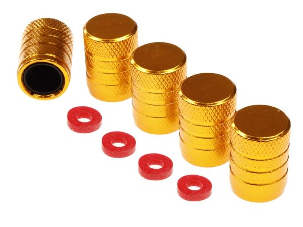 Aluminum ratlankių ventilių dangteliai with plastic thread insert, 5 vnt, golden