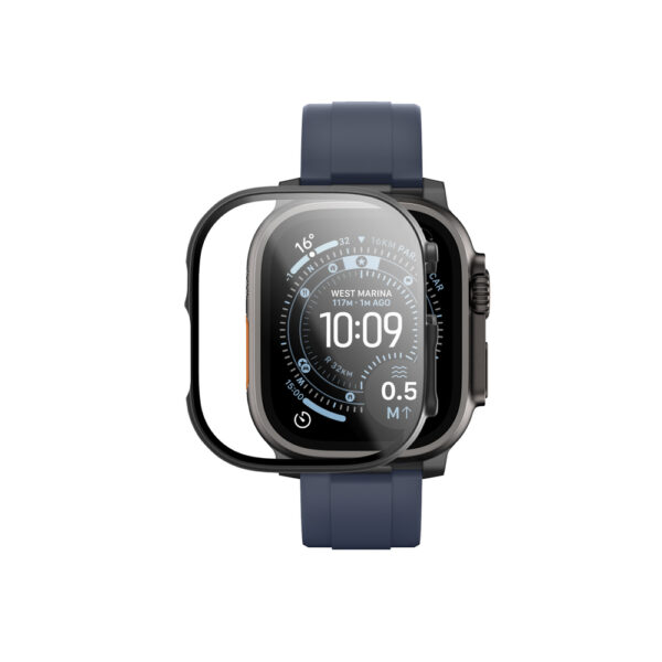 The AmazingThing Radix Glass Screen Protector with FullGuard Case offers comprehensive protection for the 49mm Apple Watch Ultra 3. The combination of 9H tempered glass and a protective frame provides full coverage against scratches, impacts, and everyday damage. The ultra-thin design maintains touch sensitivity, while the anti-fingerprint coating makes the surface easy to clean. The case is compatible with wireless charging and does not affect the operation of buttons or the crown.