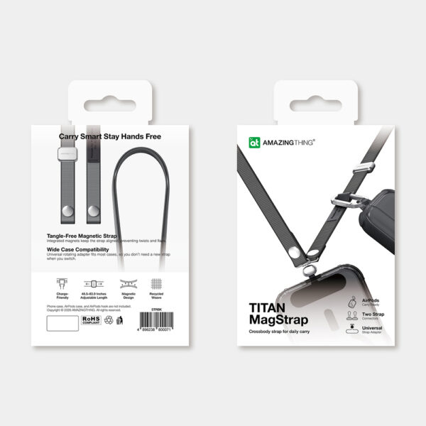 The AmazingThing Titan MagStrap phone strap is a practical accessory for carrying your phone comfortably and securely during everyday use. An integrated magnetic adjustment system keeps the strap securely in place, reducing twisting and tangling while wearing. A universal, rotating adapter allows you to use the strap with a variety of cases, and a wide range of length adjustments allows you to customize it to your individual wearing preferences. Made of PET fiber, the strap provides comfort and durability for everyday use.