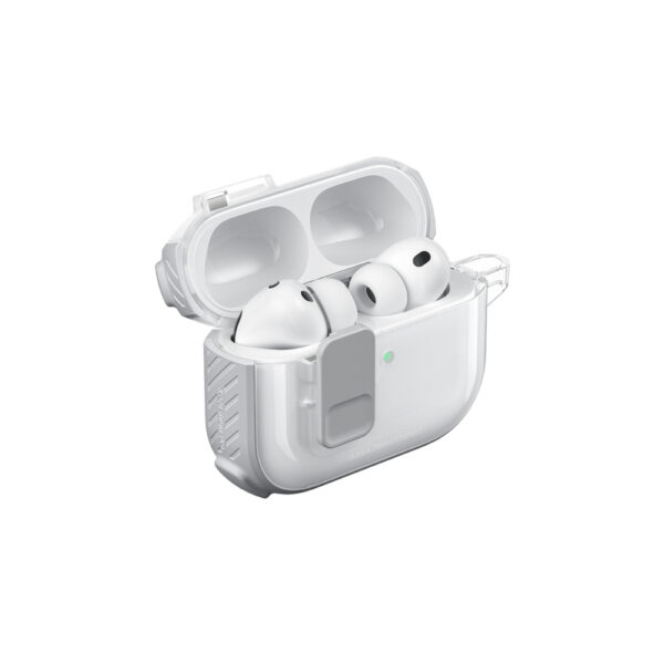 AmazingThing Titan Pro Mag dėklas Clear skirtas AirPods Pro 3 – baltos spalvos