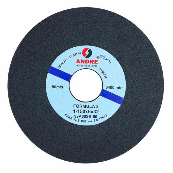 ANDRE ŠLIFAVIMO DISKAS JUOSTINIŲ PJŪKLŲ GALANDIMUI 150 x 6 x 32mm 99A60SB88 – 50 FORMULA „3”