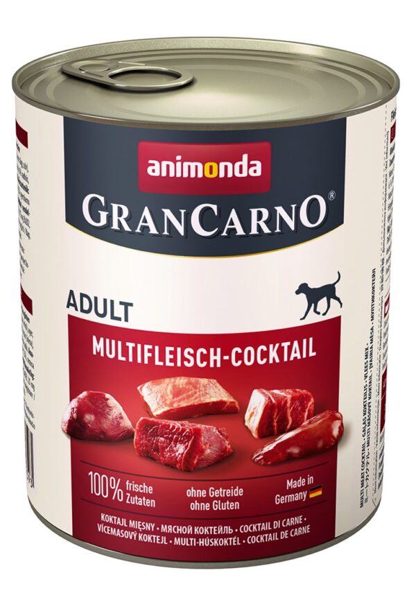 animonda GranCarno multi meat cocktail Jautiena, Viščiukas, Žvėriena, Širdutė, Kalakutiena Suaugusių 800 g