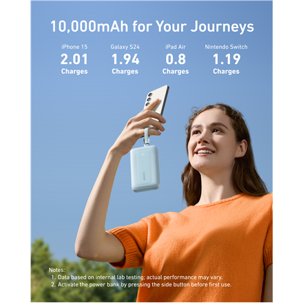Anker Power Bank with Built-In USB-C and + Lighting Cable | A1680031 | 10000 mAh | 30W | Blue