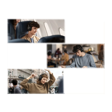 | Specialios funkcijos | Multi-Point connection; Transport mode; Outdoor mode; Indoor mode; Ultra-soft protein leather earcups with memory foam padding for pressure-free comfort; Battery Life: 40 hours with ANC and 60 hours without |