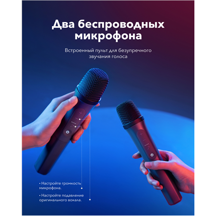 | Kitos savybės | Dynamic light show; 2 wireless microphones |