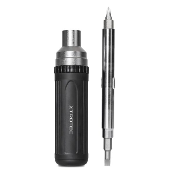 Tvirtas, aukštos kokybės ergonomiškas atsuktuvas Trotec „9 IN 1“ tiks įvairiems buities darbams. Kad atsuktuvas tarnautų ilgai ir pateisintų lūkesčius, plokščio atsuktuvo antgalius (4 mm, 5 mm, 6 mm) reiktų naudoti lengvesniems montavimo, surinkimo, medienos apdirbimo ar restauravimo darbams. Kryžminio atsuktuvo antgalius (PH0, PH1, PH2) galima naudoti remontuojant dviračius, motociklus, elektroninius prietaisus. Šešiakampės atsuktuvo galvutės (1/4″, 5/16″, 3/8″) puikiai pasitarnaus dirbant su universaliais medienai arba metalui tinkančiais varžtais.