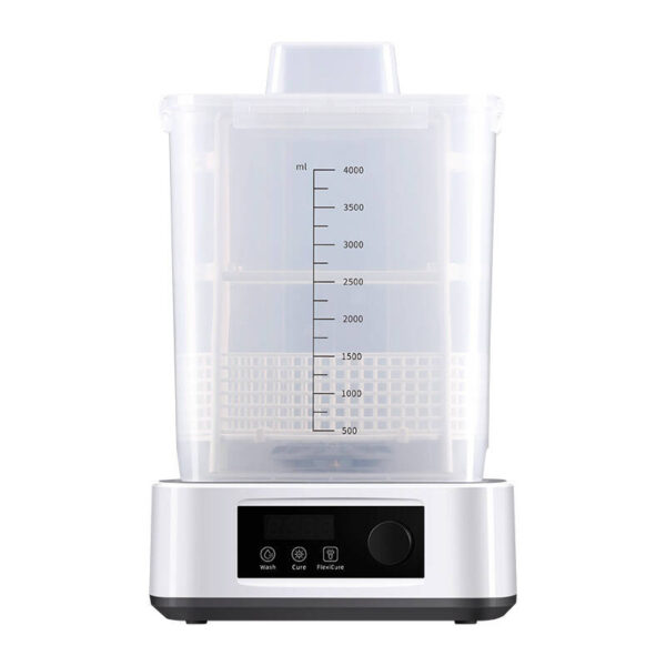The capacity of the device’s basket is 3 l, and the total capacity of its cleaning module is as much as 4 l. Thus, with its help you can easily clean prints up to 165 x 100 x 180 mm (in the basket) or up to 165 x 100 x 165 mm (with the platform). On the other hand, the dimensions of the curing space are 160 x 180 mm.