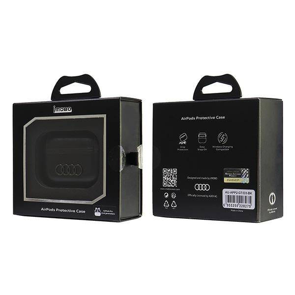 Apple AirPods Pro 2 Audi Leather Big Logo Cover (AU-APP2-GT/D3-BK) dėklas ausinėms juodos spalvos