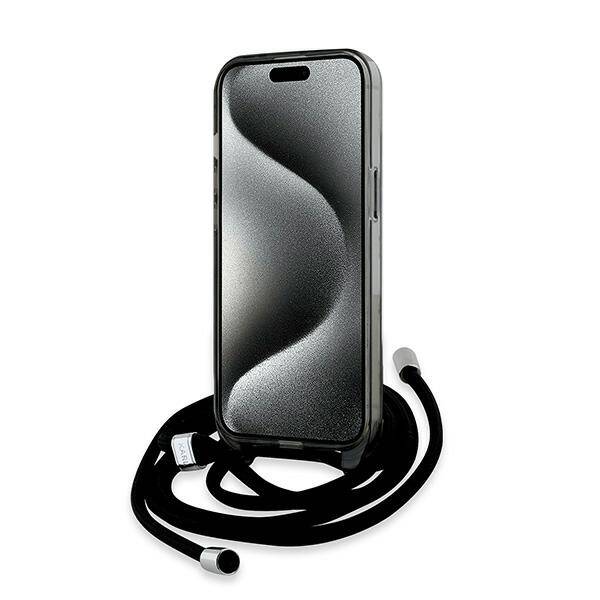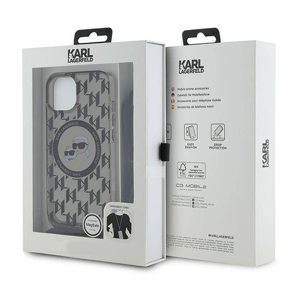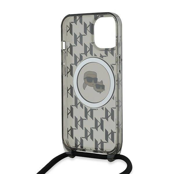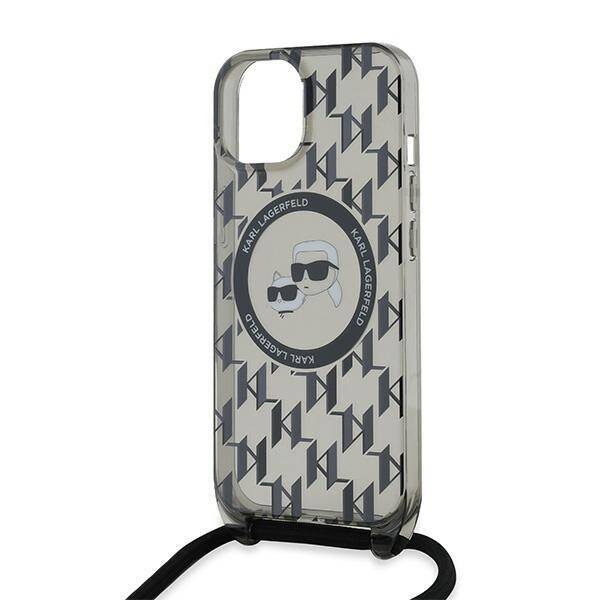 Apple iPhone 13 / 14 / 15 Karl Lagerfeld Hardcase IML Crossbody Monogram Karl & Choupette Head MagSafe (KLHMP15SHCKCKLCK) dėklas telefonui juodos spalvos
