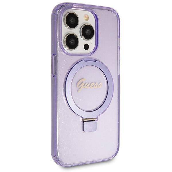Apple iPhone 13 Pro Guess dėklas Ring Stand Script Glitter MagSafe (GUHMP13LHRSGSU) violetinės spalvos