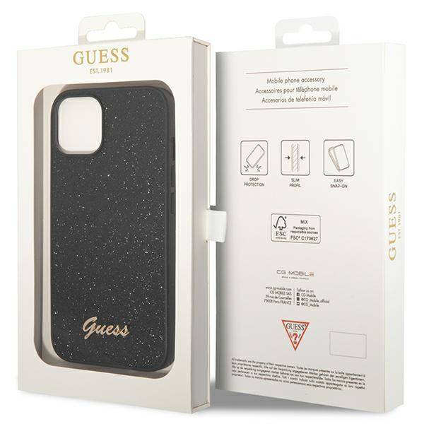 Apple iPhone 14 Plus Guess Hard case Glitter Script telefono dėklas juodos spalvos