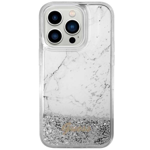 Apple iPhone 14 Pro Guess dėklas Liquid Glitter Marble (GUHCP14LLCSGSGH) baltos spalvos