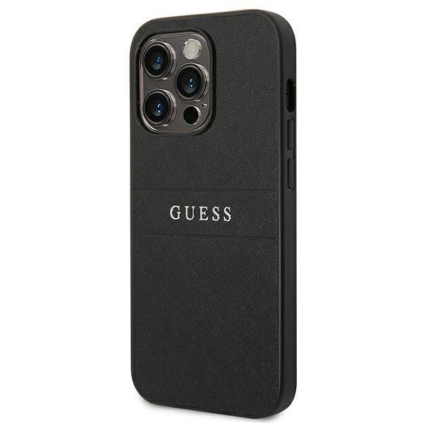 Apple iPhone 14 Pro Guess Saffiano Strap telefono dėklas juodos spalvos