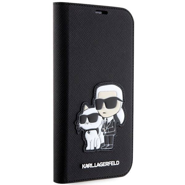 Apple iPhone 14 Pro Karl Lagerfeld Bookdėklas Saffiano Karl & Choupette (KLBKP14LSANKCPK) juodos spalvos