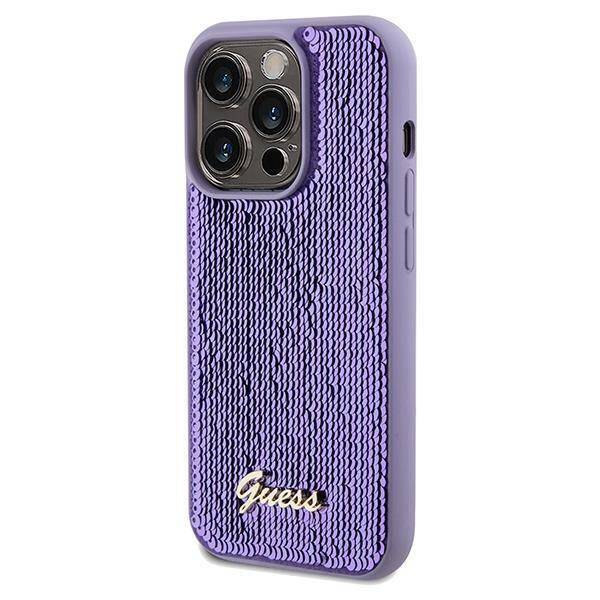 Apple iPhone 14 Pro Max Guess dėklas Sequin Script Metal (GUHCP14XPSFDGSU) violetinės spalvos