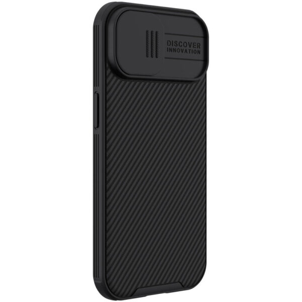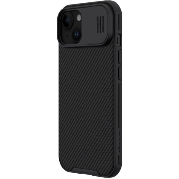 Apple iPhone 15 Nillkin CamShield Pro Magnetic dėklas telefonui juodos spalvos
