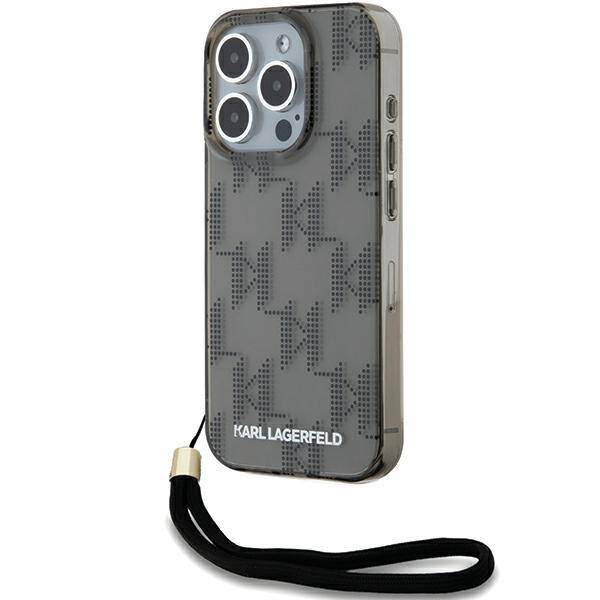 Apple iPhone 15 Pro Karl Lagerfeld dėklas IML Mono KL Pattern & Cord (KLHCP15LHKDPNSK) juodos spalvos