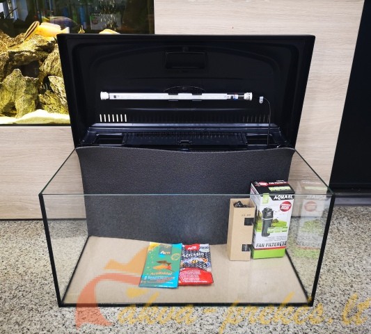Aquael akvariumo komplektas: – 60x30x30 akvariumas 54 litrų – Dangtis patogiai atsidarantis su LED 10W apšvietimu – Filtras su burbuliavimo funkcija FAN1 – Šildytuvas FIX 50W – Minkštas padas – ACTI maistas arba geros bakterijos – Dėžė Garantija: 1 metai akvariumui nuo pratekėjimo per siūlę 2 metai filtrui 2 metai šildytuvui 2 metai LED Gamintojas: Aquael, Lenkija.