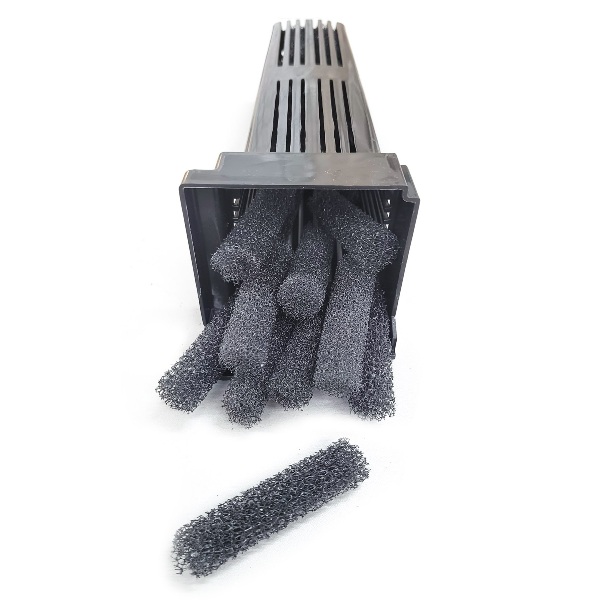 PRIEŠFILTRIO KEMPINĖS FZN PRO Kempininės formos filtro kasetės, specialiai sukurtos naudoti FZN PRO kaskadiniuose filtruose. Šiurkšti kempinė veikia kaip išankstinis filtras ir gali būti vienas iš elementų, užpildančių filtro medžiagos krepšelį. Sukurkite savo pasirinkimą Akvaristai yra įvairi grupė. Vieni vertina paruoštų kasečių su maišeliais filtro medžiagai paprastumą ir patogumą, o kiti mėgsta patys kurti filtravimą pagal savo pageidavimus. Kad ir ką pasirinktumėte, mes paruošėme jūsų poreikiams pritaikytą pasiūlymą. Pasinaudokite erdvia filtravimo kamera, kad galėtumėte užpildyti pasirinktomis biriomis medžiagomis. Pavyzdžiui, išdėliokite jas sluoksniais, kaip įprastame kaskadiniame filtre. Galite pasinaudoti mūsų plačiu filtro medžiagų asortimentu. O galbūt nuspręsite derinti savo išdėstymą su viena ar keliomis kasetėmis? Sprendimas yra jūsų! Išankstinis vandens apdorojimas Pakeičiamos filtro kasetės yra paruoštas sprendimas, kuris pagerins švaraus vandens priežiūrą akvariume. Ypatingą vaidmenį šalinant nepageidaujamas medžiagas iš vandens atlieka išankstinis filtras. Jis sustiprina pagrindinių filtro išteklių darbą ir užtikrina, kad didesnės priemaišos nepatektų toliau. FZN PRO kaskadiniame filtre išankstinio filtro funkciją atlieka smulkūs stambios filtro kempinės elementai. Jų cilindrinė forma leidžia optimaliai išnaudoti filtravimo paviršių ir tinkamai užpildyti krepšelį. Kempinės turėtų būti dedamos į talpyklą, esančią po reguliavimo rankenėle. Kempinėlė, pritaikyta FZN PRO filtrams Labai tylūs ir efektyvūs FZN PRO kaskadiniai filtrai gali būti naudojami tiek gėlavandeniuose, tiek sūraus vandens akvariumuose. Po vandeniu esančio variklio nereikia užlieti vandeniu, o daugybė patogumų leidžia patogiai naudoti. Verta po filtro krepšeliu padėti kempinės kasetę. Tai sustiprins vandens valymo efektą, taip pat leis visapusiškai išnaudoti filtro krepšelio tūrį. Porėta kempinė bus pradinis filtravimo elementas. Ant jos galite sluoksniuoti bet kokią birią „Aquael“ siūlomą filtravimo medžiagą – patys nuspręskite, kas geriausiai tiks jūsų akvariumui. Taip pat galima derinti birius filtrus su paruoštais filtrais, skirtais FZN PRO. Mėlynos pagrindinio krepšelio kempinės yra idealiai išpjautos, kad atitiktų krepšelio išlinkius. Jos tinka šiems FZN PRO šeimos filtrų tipams: FZN PRO 700 FZN PRO 1000 FZN PRO 1500 Pastaba: FZN PRO 400 modelis neturi specialiai skirtų kempinių. Nuotraukose parodyti plastikiniai krepšeliai neįtraukti į čia aprašytą filtrų rinkinį. Jie parduodami kartu su FZN PRO filtrų modeliais.