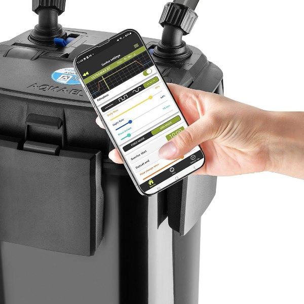 Pripažintas tarp akvariumininkų visame pasaulyje Jau daugelį metų siūlome „Ultramax“ akvariumo filtrą. Nuolat gauname teigiamų atsiliepimų iš rinkos ir žinučių iš patenkintų vartotojų, kurie vertina jo našumą, patikimumą ir patogumą naudoti. Dabar akvariumų entuziastai visame pasaulyje gali pasinaudoti novatorišku filtro valdymu naudojant „Bluetooth“ technologiją. Nuotolinio valdymo filtras „Ultramax BT“ yra nauja mūsų klasikinio filtro versija, kurią valdyti dar patogiau nei bet kada anksčiau. Šioje versijoje visas parinktis nustatysite per savo mobilųjį įrenginį – išmanųjį telefoną ar planšetinį kompiuterį. Pasirūpinkite galios, srauto nustatymu ar įjungimu neeidami į akvariumą! Jums tereikia atsisiųsti ir įdiegti „Aquel BT“ programėlę (pasitikrinkite ją savo „Android“ arba „IOS“ parduotuvėje). Visiškai reguliuojamas našumas Filtro našumo valdymas yra itin paprastas ir intuityvus. Telefone tiksliai nustatote norimą efektyvumo lygį, o po kurio laiko filtras atitinkamai reaguos. Valdymas sklandus – lengvai įskaitomoje ašyje nustatote atitinkamą filtro išvesties procentą. Lankstūs srauto režimai Rinkitės iš 4 srauto režimų, tokių kaip nuolatinis, impulsinis, sinusoidinis arba pertraukiamas, pritaikydami filtro darbą prie jame esančių gyvūnų ir augalų. Skirtingi „raukšlių“ režimai leidžia imituoti natūralias aplinkos sąlygas. Tai skatina žuvis ir augalus sveikiau augti ir gerina jų savijautą. Filtras, pritaikytas prie paros ritmo Sąlygos kaip gamtoje – tai daugelio akvariumininkų svajonė. Tačiau ar galite savo namuose suteikti gyvūnams ir augalams artimą gamtą? Su dienos ir nakties režimu tai įmanoma! „Ultramax BT“ filtras leidžia valdyti srauto galią kaip ir atviruose akvariumuose, kur naktiniai raibuliai skiriasi nuo dienos. Jums tereikia nurodyti valandas, kada norite, kad filtras veiktų lėčiau, ir bus atliktas nakties planavimas. Be to, galite nustatyti švelnesnį veikimą žuvų šėrimo metu, kad jos nebūtų papildomai apkrautos. Filtras palaipsniui pradės mažinti srauto galią, kad taip pat švelniai grįžtų prie nustatytos galios pasibaigus maitinimui. Patentuoti sprendimai Mūsų „Ultramax BT“ filtras išsiskiria didele filtro masės talpa. Jį aprūpinome daugybe sprendimų, kurių aukščiausią kokybę patvirtina patentai: